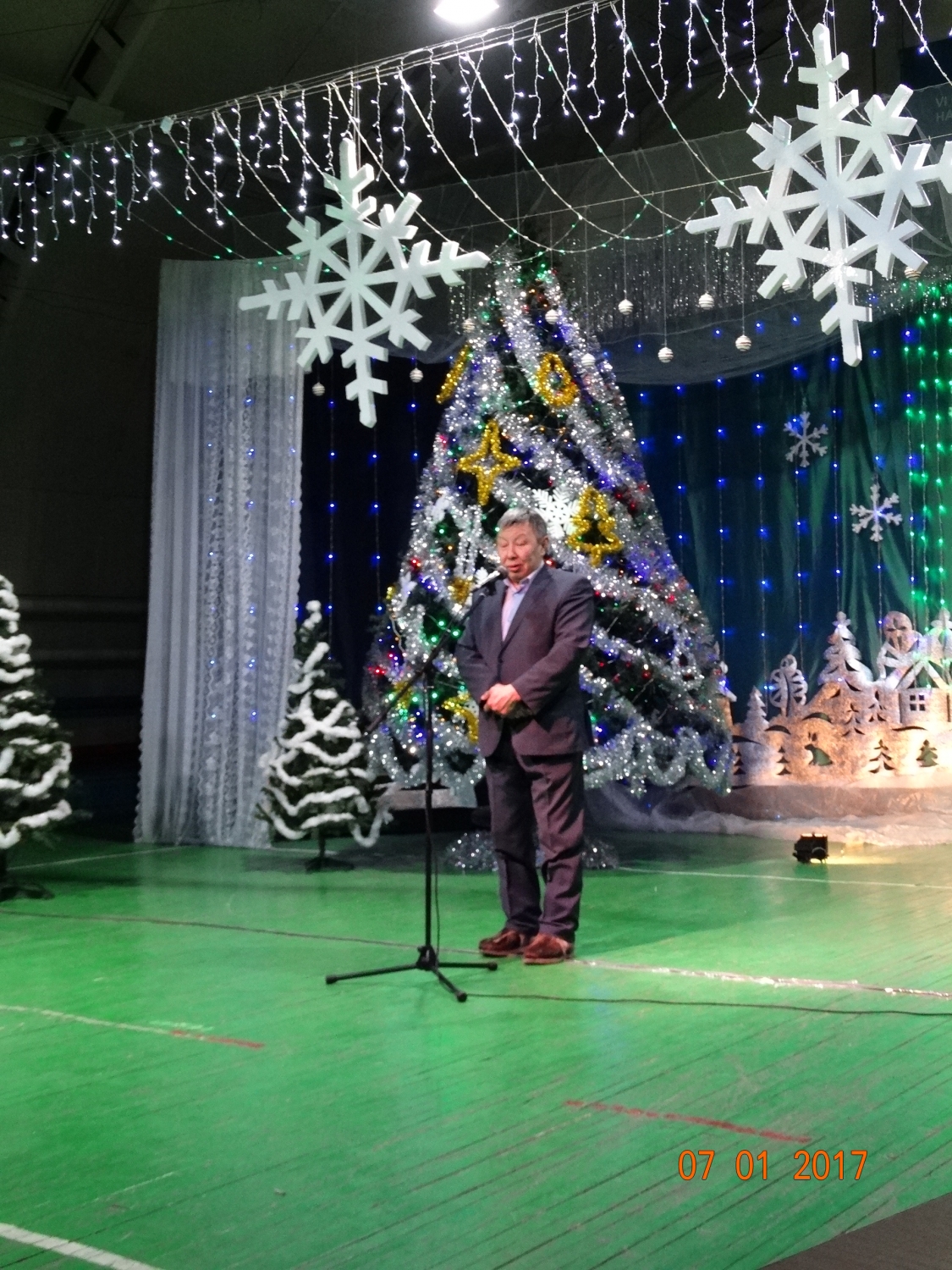 Ахсынньы 31күнүгэр Аппааны бөһүөлэгэр үүнэр Саҥа Дьылы көрсөр үөрүүлээх киэһэтигэр КСК залыгар элбэх киһи муһунна. Үгэс курдук олохтоохтору уонна ыалдьыттары кэлэн иһэр Саргылаах Саҥа Дьылынан эҕэрдэлиир «Хатыҥ-Арыы нэһилиэк» муниципальнай тэриллии Баһылыга Слепцов Юрий Иннокентьевич. Элбэх эҕэрдэ ырыа ылланна, үҥкүү да үҥкүүлэннэ, бөтүүк сылыгар аналлаах театрализованнай көстүү кыттыылаахтара оонньоон мустубут дьону сэргэхситтилэр.Тымныы оҕонньор Хаарчаана кыыһынаан,кырачаан сиэннэрэ Саҥа Дьыллыын бэйэлэрин эҕэрдэлэрин эттилэр. | |
